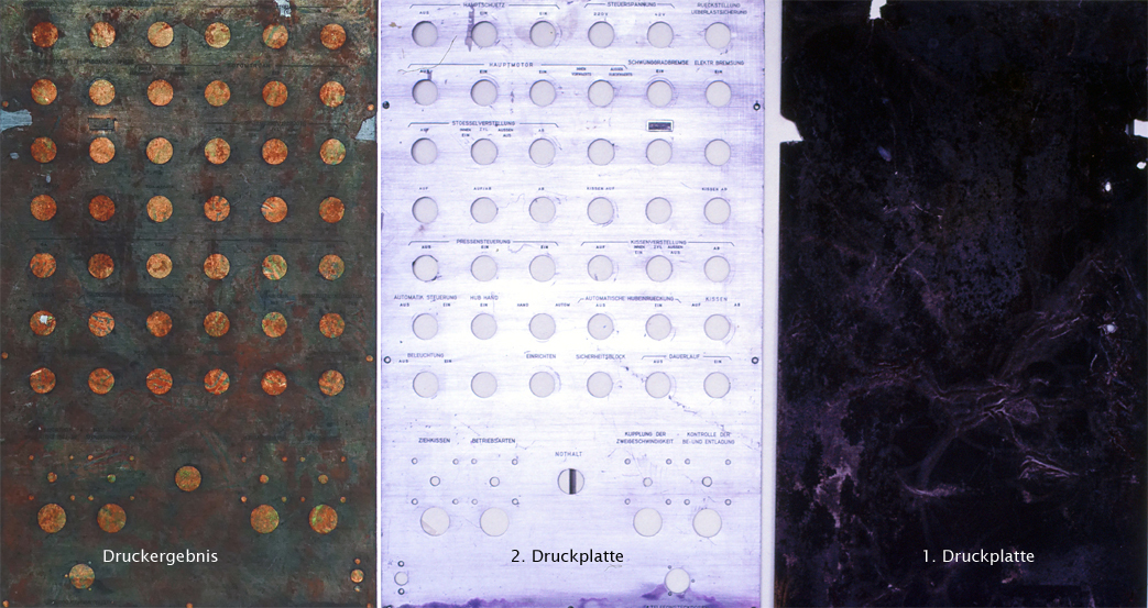 Bei konventioneller Tief- und Hochdruckgrafik liegt der künstlerische Gestaltungsprozess in der Herstellung des Druckstocks. Der Druckprozess ist dabei nur das Reproduktionsverfahren, um ein Bild zu vervielfachen, eine Auflage herzustellen. Bei meinen Arbeiten ist aber gerade der Druckprozess auch künstlerischer Gestaltungsprozess. Ich experimentiere dabei mit unterschiedlichsten Druckstockmaterialien und Einfärbmethoden.